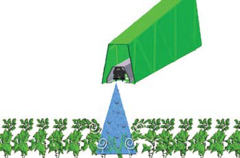 A turbina a permetezőkeret légszekrényében/zsákjában fújja végig a levegőt, majd a fúvókák előtt és mögött található kiáramló furatokon lép ki a keretből. Úgynevezett injektor hatás jön létre, az állományba áramló levegő magával viszi a növényvédő szert. A szórókeretek általában 2, illetve 4 fúvókás szórófejjel is felszerelhetőek, amit a fülkéből kapcsolgathat a gép kezelője. A szivattyú a permetlevet mindig keringeti és keveri. Bármelyik szakasz kapcsolásakor azonnal felépül a kívánt permetezési nyomás.