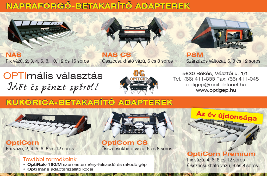 Az OPTIGÉP Kft. a mezőgazdaság gépigényeit figyelembe vevő fejlesztési munkájának eredményeként korszerű termékskálával áll megrendelői szolgálatára.