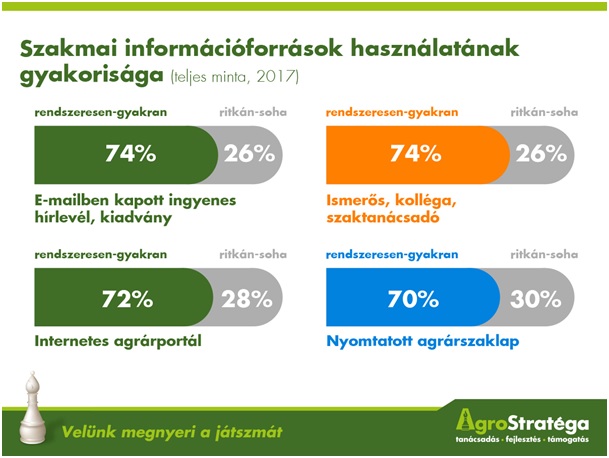 Az AgroStratéga 2017-ben már hatodik alkalommal indította útjára azt a kutatást, melynek kérdőíve a mezőgazdasági termelést hivatásszerűen, árutermelés céljából folytató egyéni gazdálkodók és cégvezetők szakmai információszerzési szokásaival, valamint jövőképével kapcsolatos kérdéseket tartalmaz. Az országos felmérés eredményeiről a szaklapok és szakportálok kiadóinak képviselőit is tájékoztatták a piackutatók.