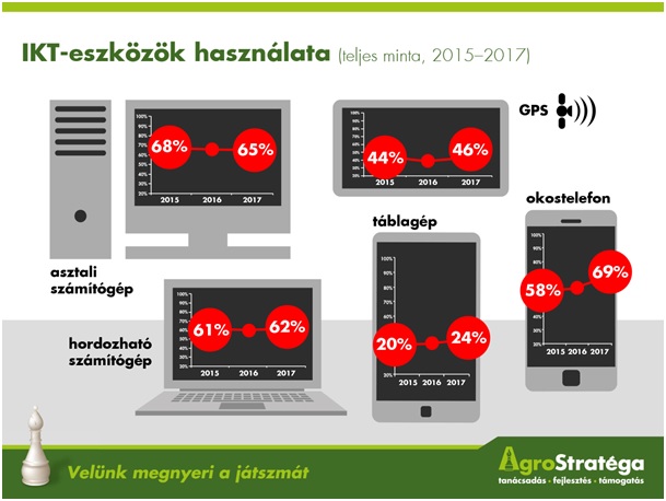 „Fontos mérföldkőnek tekinthető, hogy az asztali számítógépek használatának arányát idén már meghaladja az okostelefonok használatának aránya. A negyven év alatti korcsoportnál a hordozható számítógépek (laptop/notebook) használata is messze felülmúlja az asztali gépekét. Ha ehhez még hozzátesszük azt, hogy a döntéshozók kétharmada rendszeresen használ internetbankot, akkor tényleg szembetűnő a változás. E trendeket pedig figyelembe kell vennünk akkor, amikor márkát építünk, új terméket vagy szolgáltatást vezetünk be a piacra” – zárta a tájékoztatót Pólya Árpád AgroStratéga-tanácsadó.