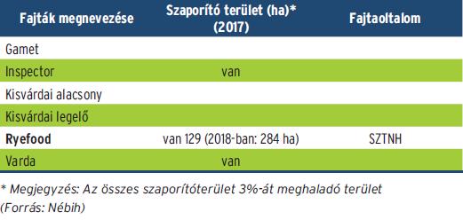 2. táblázat. Rozs Nemzeti Fajtajegyzék (2018)