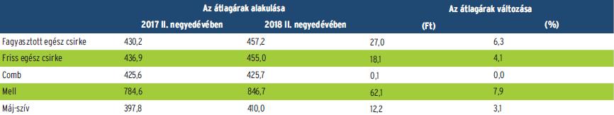 A vágóhídi termékek nettó belföldi nagykereskedelmi átlagárai 2017 és 2018 második negyedévében
