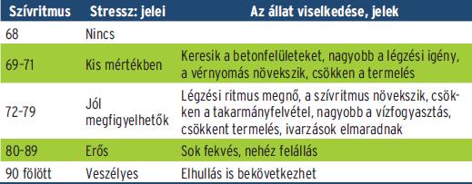 Egy németországi vizsgálatban a tejelő tehenek viselkedését ellenőrizték különféle hőmérsékleti és páratartalmi viszonyok között. Mérték az állatok szívritmusának változását, a légzésüket, mozgásukat, a fekvés időtartamát, ivarzást stb. A stressz mértékére öt jellemzőt alkalmaztak, a „nincs stressz” helyzettől a „veszélyes” helyzetig (amely az állatok elhullását is eredményezheti). Ebből következik, hogy a hőmérséklet és a páratartalom megfelelő szinten tartása az állatok egészsége és a termelés szempontjából is meghatározó jelentőségű.