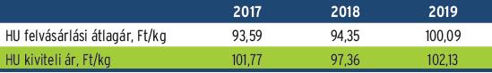 4. táblázat. Feldolgozói átadási árak változása, Ft/kg,