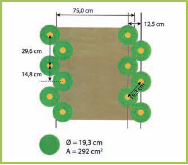 Egyes típusoknál a vetőkocsik ikersorosan, párosan vannak elhelyezve, az ikersorok távolsága 70–76,2 cm (7. ábra).