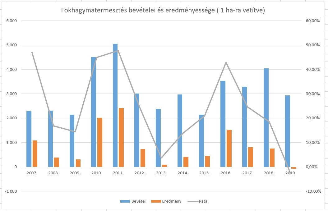 A mellékelt grafikon a fokhagyma elmúlt tíz éves jövedelmezését mutatja, kommentár nem is kell hozzá! Gondolom a vöröshagyma eredménye is hasonló. A petrezselyem gyökéré meg hullámzó.