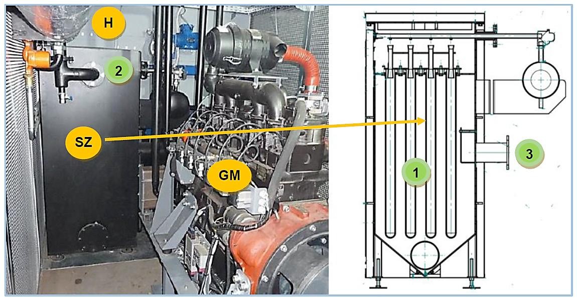 7. ábra. A gázmotor (GM) előtt alkalmazott porszűrő (SZ)