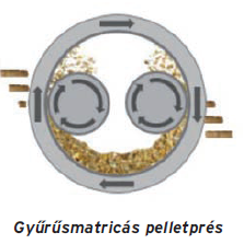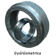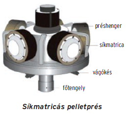 Cikkünk elején már említettük, hogy a matrica kialakítása alapján csoportosítjuk a pelletpréseket. Nem szóltunk még azonban a csigás és a dugattyús pelletálókról. Ezekben egy acélcsiga vagy -dugattyú tolja keresztül az alapanyagot a matricán. Nagyüzemi körülmények között ezeket a berendezéseket tűzipellet előállításához már nem használják. A síkmatricás, illetve a gyűrűsmatricás berendezésekben görgők préselik át a pelletálandó anyagot a matricán. A kemény, edzett, általában hőkezelt krómacél alapanyagból készülő matrica, valamint a görgők kopó alkatrésznek minősülnek. A gép típusa, valamint az üzemeltetés körülményei jelentősen befolyásolják ezek élettartamát. Könnyen elképzelhető, hogy ily módon a drágább, de jobb minőségű présgépek már az üzemeltetés első éveiben ledolgozzák a bekerülés többletköltségét. Fejlett technológia alkalmazása mellett kopás esetén lehetőség van a görgőhéj cseréjére, de a matrica leselejtezését nem kerülhetjük el. A matrica másik oldalán találhatóak meg a kések, amelyek a megfelelő méretre vágják a pelletet.