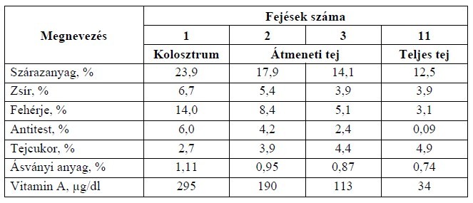 A föcstej, az átmeneti tej és a teljes tej összetételének változása