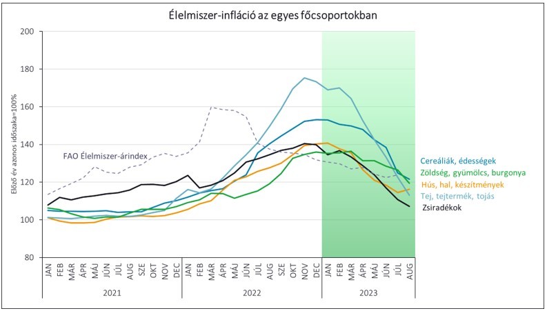 Újabb lélektani határ alá csökkent az élelmiszer-infláció Magyarországon azzal, hogy augusztusban kevesebb mint 20 százalékra mérséklődött az élelmiszerek drágulása – mutattak rá az MBH Bank Agrár- és Élelmiszeripari Üzletágának elemzői a Központi Statisztikai Hivatal (KSH) által pénteken ismertetett inflációs adatokra reagálva. „A múlt hónapban is folytatódott az infláció január óta tartó lassulása, továbbra is afelé tartunk, hogy év végére éves összehasonlításban egyszámjegyű lesz a drágulás mértéke” – hangsúlyozták. Az élelmiszerár-stopok augusztus eleji kivezetése minimálisan éreztette hatását a bolti árak alakulásában, amelyben most lett tetten érhető a sertéspiacon év elején végbement drágulás is.
