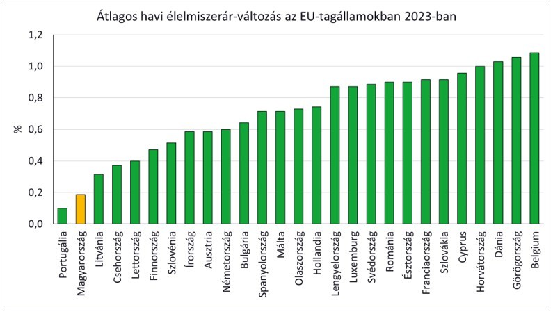Felhívták a figyelmet arra is, hogy az Európai Unió statisztikai hivatala által összeállított élelmiszer-inflációs mutatót tekintve Magyarországon a második legalacsonyabb a drágulás hónapról hónapra vizsgált mértéke: idén eddig átlagosan 0,2 százalék. Magyarázatként hozzáfűzték: „ugyan a drágulás az előző év azonos időszakához viszonyítva még mindig a legmagasabb Európában, az évközi folyamatok kiemelten kedvező irányba mutatnak, azaz hónapról hónapra érezhetően kisebb terhet jelent a bevásárlás”.