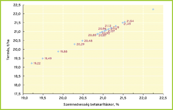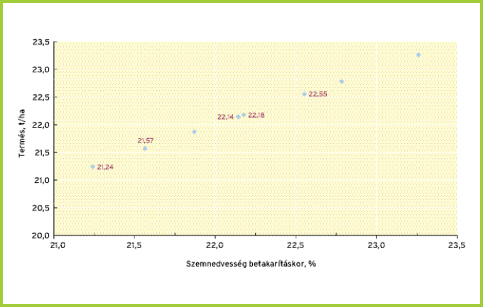 Szemnedvesség. A gyakorlat számára a kamuti, kardoskúti, békéscsabai és ceglédi szemnedvesség adatok adnak értékelhető tájékoztatást a hibridek várható szemnedvességéről. A statisztikai vizsgálatok nem mutattak ki határozott összefüggést a virágzásidők, a tenyészidőben mért szemnedvességek és a betakarítási szemnedvesség között. Hasonlóan nem volt határozott az összefüggés a vetésidő és a betakarítási szemnedvesség között sem.