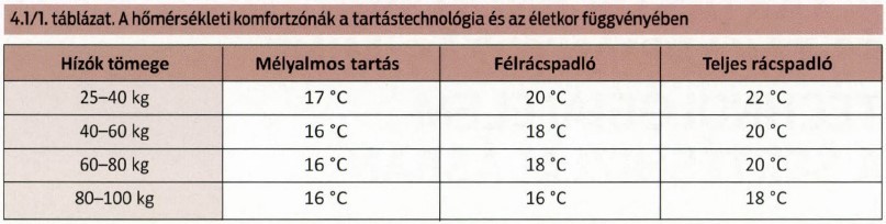 A hizlalási periódusban külön fűtésre nincs szükség, jól megtervezett istállóban az animális hő jól kihasználható.
