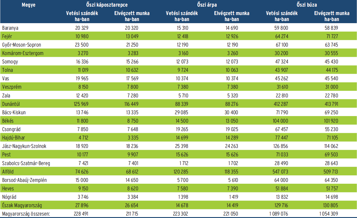 Forrás: NAK Mezőgazdasági Igazgatósága,