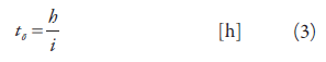 A (2) egyenletben a Q térfogatáram most m3/h, az induló nyomás pny bar és a tö öntözési idő órában helyettesítendő. Az öntözés időigénye a vízadag (h, mm) és a kiadagolás intenzitása (i, mm/h) ismeretében meghatározható: