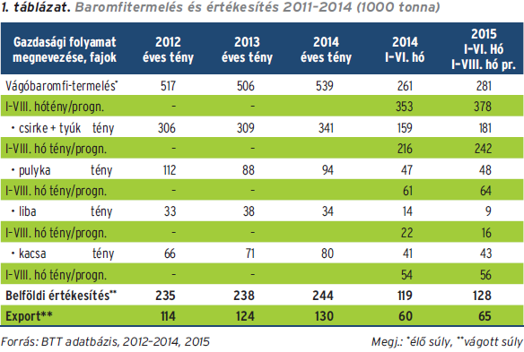 A magyar baromfiszektor 2015. I. félévi teljesítményét összefoglalva elmondhatjuk, hogy az ágazat főbb mennyiségi számai mérsékelt növekedést mutatnak.