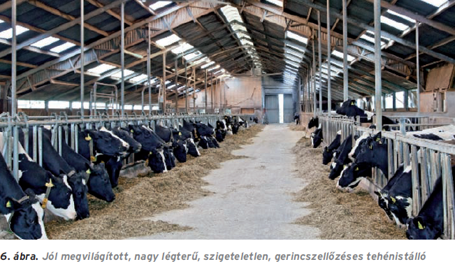 A nagy légtér különösen fontos a szigeteletlen, mennyezet nélküli tetőborítású szarvasmarha-istállóknál (6. ábra).