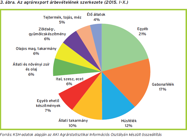 Exportunk erősen koncentrált. A három legnagyobb értékű árucsoport – a gabonafélék, a húsfélék, az állati takarmányok – részesedése a teljes agrár-exportból 40 százalék volt.