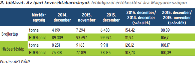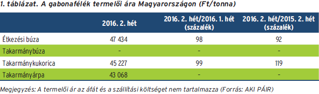 Magyarországon az AKI PÁIR adatai szerint január második felében a takarmánykukorica termelői ára nem mozdult a korábbi, 45 ezer Ft/t körüli szintről. Az elemzők szerint 2016. január és augusztus között a napraforgómag belpiaci feldolgozása csökkenhet az Európai Unióban, ezzel együtt nőhet a napraforgóolaj és -dara importja.