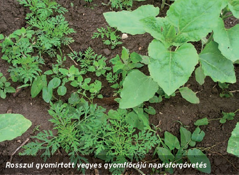 Nehezen irtható, egész évben folyamatosan kelő gyomnövényekkel (szerbtövisfajok, selyemmályva, parlagfű, iva) erősen fertőzött táblába napraforgót lehetőleg ne vessünk addig, amíg a napraforgót megelőző kultúrákban (kukorica, búza) a gyomnövény egyedszámát a tarlókezelési eljárásokkal kiegészítve le nem csökkentettük.