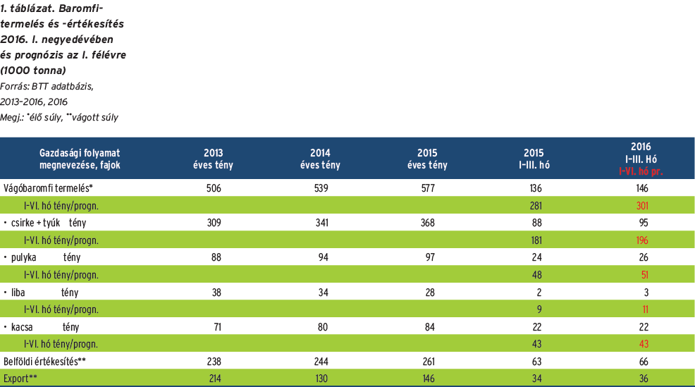 A magyar baromfiágazat 2016. I. negyedévében és féléves előrejelzés