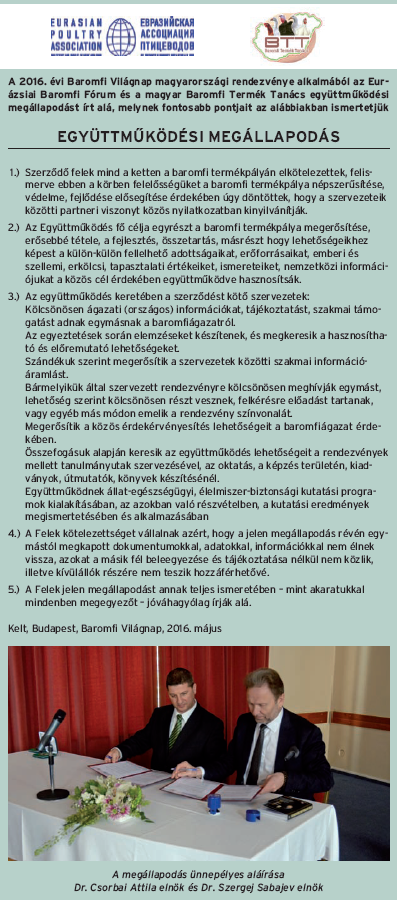 A Baromfi Termék Tanács a hazai és a világ baromfiszektorának általános helyzetét elemezve említi, hogy az USA-ból származó információk szerint az elmúlt néhány év a világ baromfihús-termelésének konjunkturális időszaka volt. Elsősorban a hústermelés zömét szolgáltató brojlerágazat növekedett. A felpörgő termelés már a múlt év őszén árcsökkenést okozott, amely 2016-ban már állandósulni látszik. Európában ebből kifolyólag már problémák mutatkoznak a csirke területén. A világ bőséges kukorica- és búzakészletekkel rendelkezik, az USA-ban 1 millió hektárral csökken a kukorica és 800 ezer hektárral nő a szója vetésterülete. Ott a csirke- és pulykatermelés további felfutása várható. A takarmányárak viszonylag kedvezőek, ez a baromfitermelésnek kedvez, de éppen ezért a nem kellően megalapozott termelésnövelés piaci zavarokhoz vezethet.