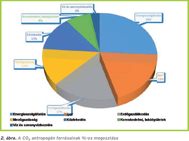 A CO2 koncentrációja a földtörténeti korokban nem volt állandó. Az őslégkör döntő többségét, kutatók szerint CO2 és CO alkotta. A holocén korban kialakult CO2 egyensúly, a kb. 280 ppm (milliomod rész) az ipari forradalom idején indult növekedésnek, s ez tart napjainkban is, elérve a 400 ppm-es évi átlagot. A növekedés a természetes folyamatokkal párhuzamosan a fosszilis tüzelőanyagok égetése, az erdőirtás, faégetés, mocsarak lecsapolása, intenzív mezőgazdaság és egyéb antropogén tevékenységek eredője (2. ábra).