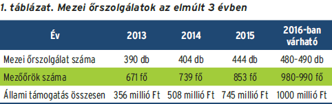 A növekedés elsősorban a 2014. január elsejétől megemelt állami hozzájárulás mértékének köszönhető, mellyel éppen az volt az FM célja, hogy a mezei őrszolgálatok létesítését és a mezőőrök számát serkentse, és ezen keresztül a helyi közbiztonság fokozásához, illetve a mezőgazdasági lopáskárok csökkentéséhez hozzájáruljunk. A jelenlegi közel 500 mezei őrszolgálat Magyarország településeinek mindössze 15%-át fedi le.